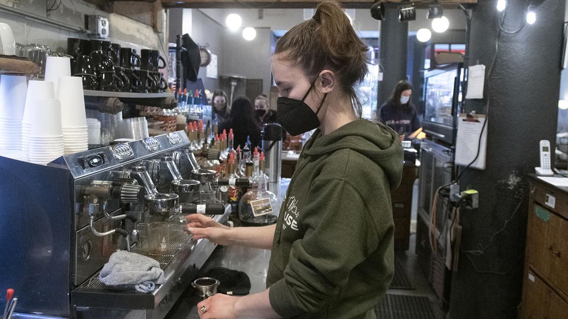 Hope Smith, manager of the Coffee House, makes an oat milk latte on Wednesday. After owner Mark Shriner launched an online fundraiser this week, customers and business backers showed their support. "I'm amazed," he said.