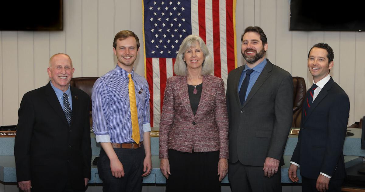 The Tuolumne County Board of Supervisors: (from left) David Goldemberg, Jaron Brandon, Kathleen Haff, Ryan Campbell, and Anaiah Kirk.
